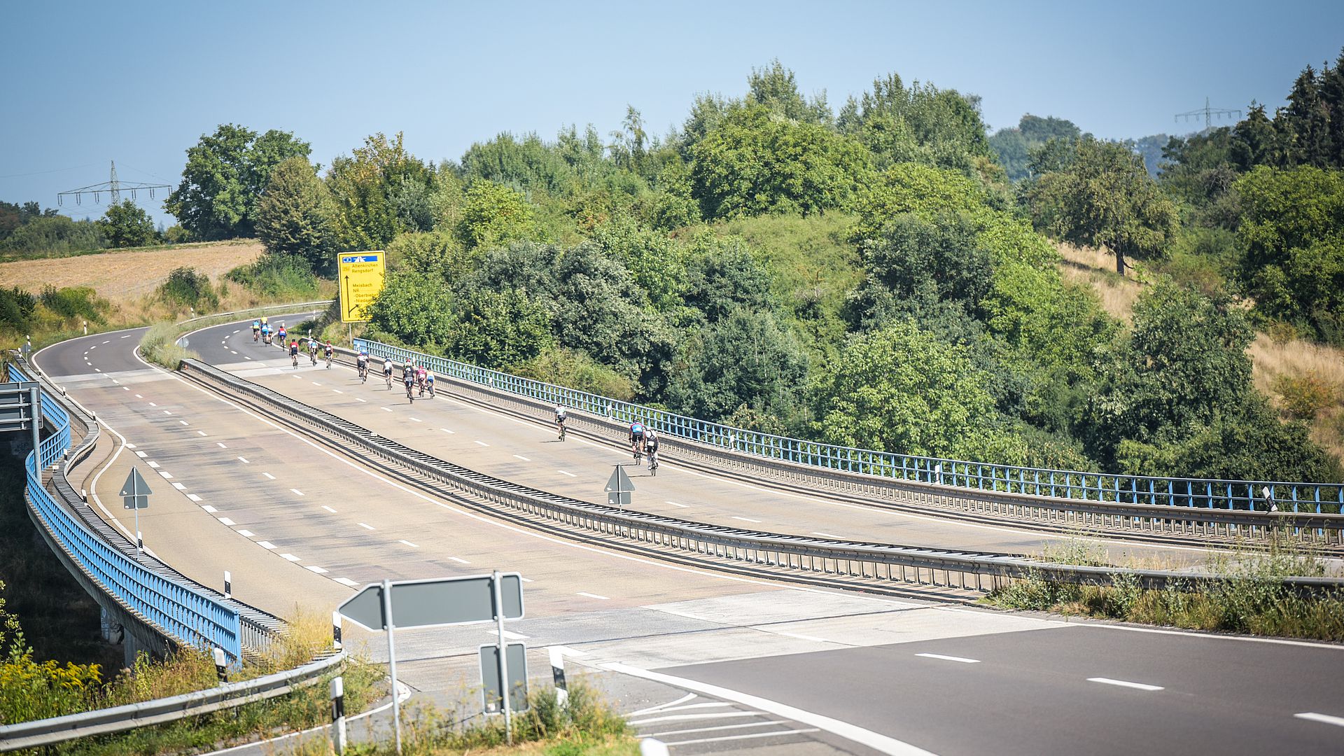 Von der Wechselzone geht es über die Deichstraße, die Friedrichstraße und die Rheinstraße Richtung Süden und dann links ab auf die Auffahrt zur Bundesstraße 256, die halbseitig (von Neuwied aus gesehen, die linke Seite der B256) voll gesperrt ist. Da heisst, auf der autobahnänlich ausgebauten Radstrecke besteht Rad-Gegenverkehr, es gilt das Rechtsfahrgebot! Die B256 fährst du wellig hinauf bis zum oberen Wendepunkt (etwa Höhe Anschluß Melsbach), dort stehen Helfer der Feuerwehr und auch ein Malteser Rettungswagen. Ab dort geht es zurück ins Tal des Neuwieder Beckens. Als Teilnehmer der SD fährst du an an der Ausfahrt Hafensraße rechts das "Abfahrtsohr" hinaus, dann links ab auf den Sandkauler Weg unter der Brücke hindurch und direkt rechts ab auf die Rheinstraße. Die Rheintsraße fährst Du ganz durch bis zur Kreuzung Friedrichstraße, dann rechts ab in die Deichstraße bis zum Pfarrtor und rechts ist bereits die Wechselzone. Als Teilnehmer der OD kehrst Du am unterem Wendepunkt auf der B256 (kurz nach Ausfahrt Hafenstraße) um und fährst erneut die B256 hinauf auf deine zweite und letzte Runde. Als Teilnehmer der MD fährst Du insgesamt 4 Runden. Strecken vorbehaltlich der Genehmigung durch die zuständigen Genehmigungsbehörden, daher Änderungen der Streckenführung vorbehalten!